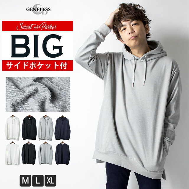 パーカー メンズ BIGシルエット プルパーカー トレーナー スウェット 無地 ポケット付き ビッグサイズ BIG トップス ゆったり 黒 白 紺 グレー M L 大きいサイズ