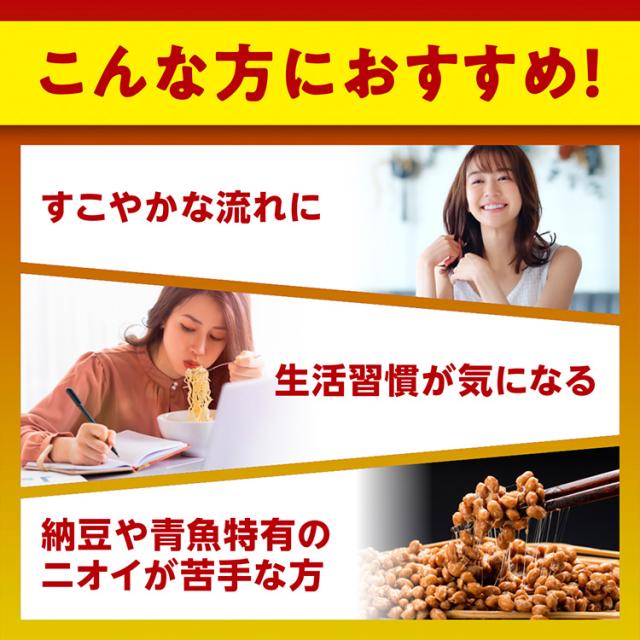 ●一日摂取目安量1粒の手軽さで、独特の味やニオイが気にならないため、納豆が苦手な方にもおすすめです。