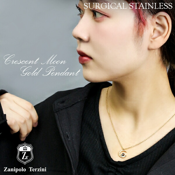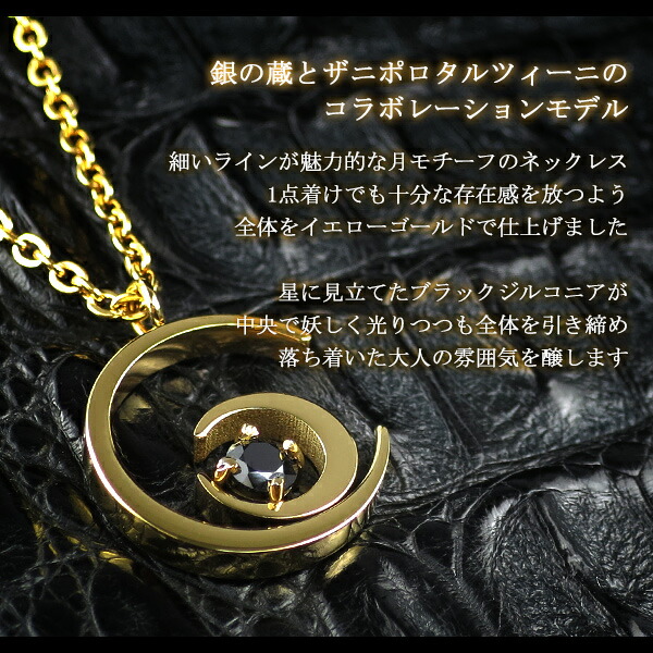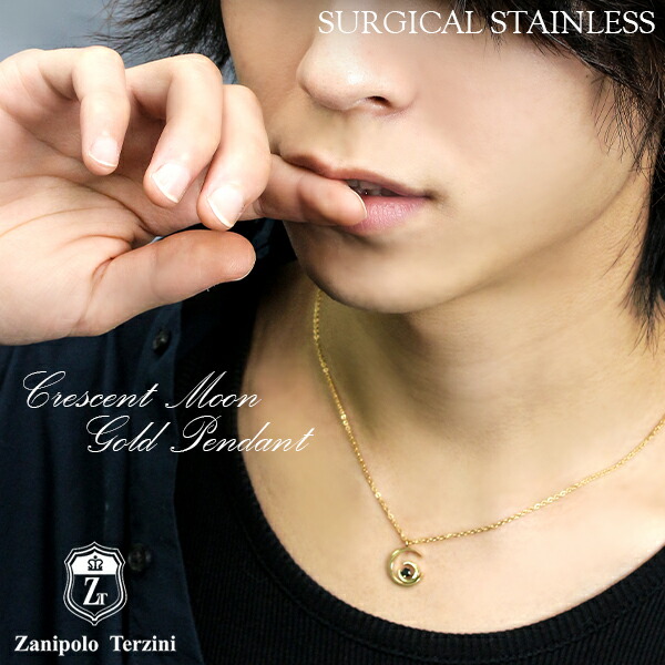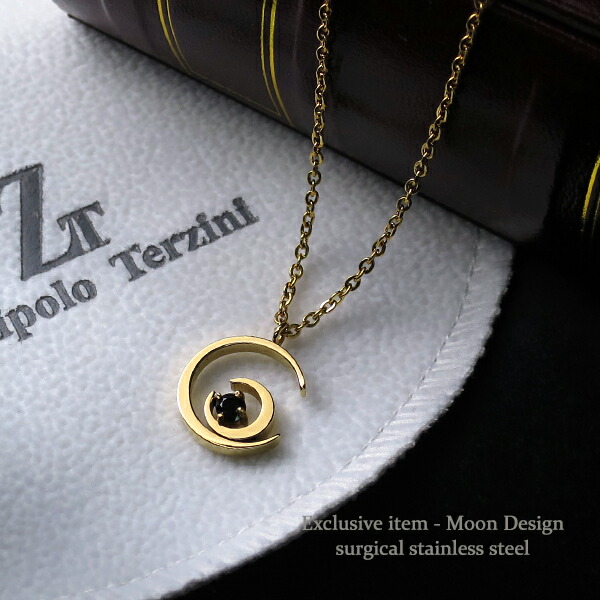 当店限定 ザニポロタルツィーニ 選べる2カラー 三日月 ブラック ジルコニア ゴールド ネックレス メンズ サージカルステンレス 金属アレルギー対応 金