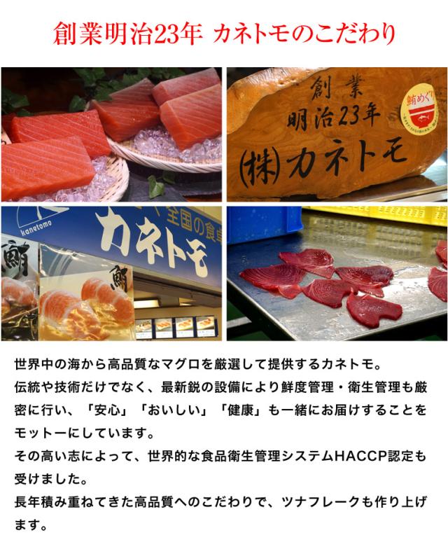 日本有数のマグロ水揚げ量を誇る焼津で、明治23年に創業したマグロ専門店カネトモ。 そんな老舗のマグロ専門店が、本気で作った「ツナフレーク」です!