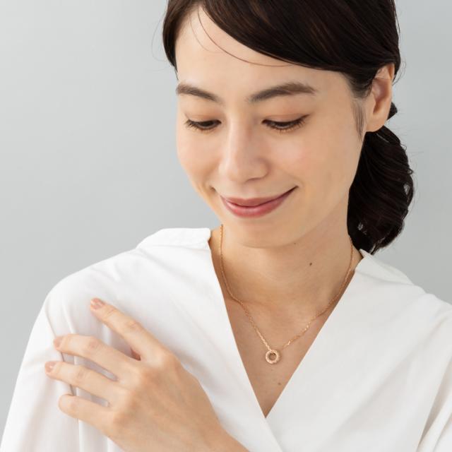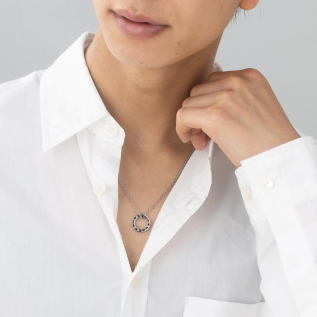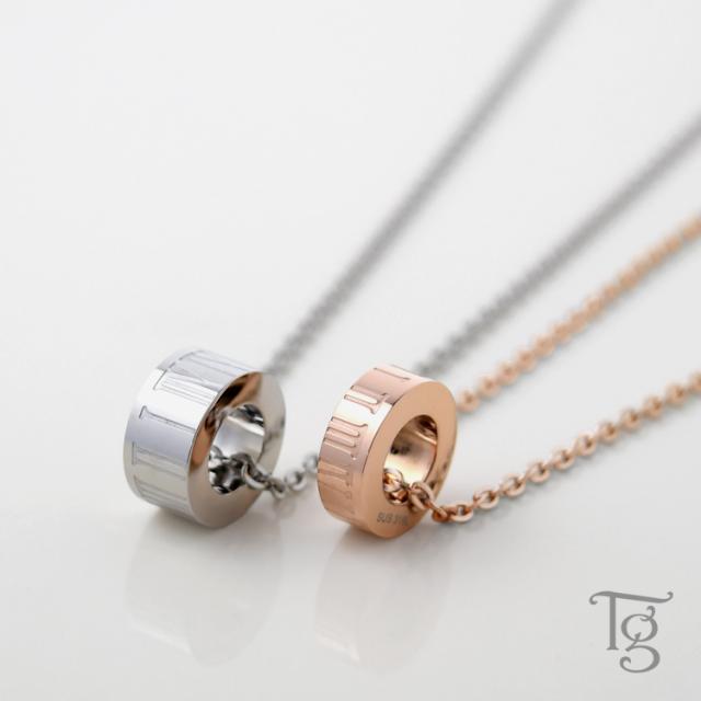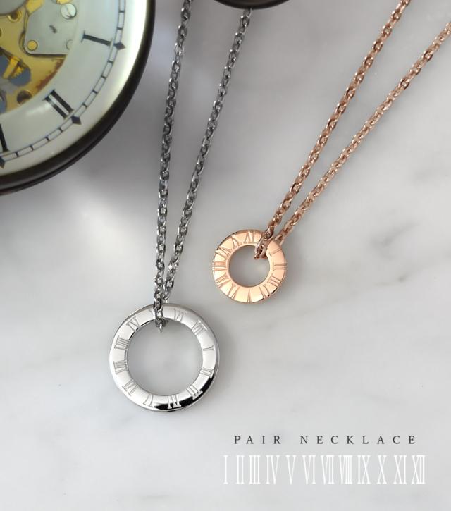 大小リングタイプのペンダントトップを重ねると、ローマ数字デザインがつながるペアネックレス。 男性用はスティールシルバーカラー、女性用はローズゴールドカラーになります。
