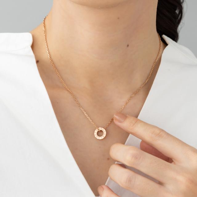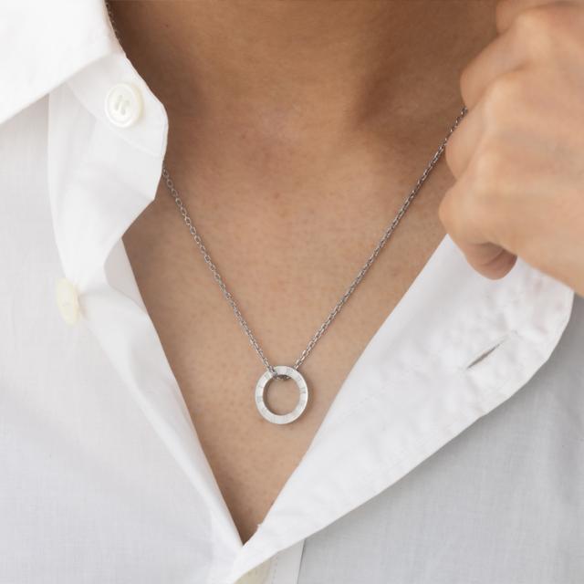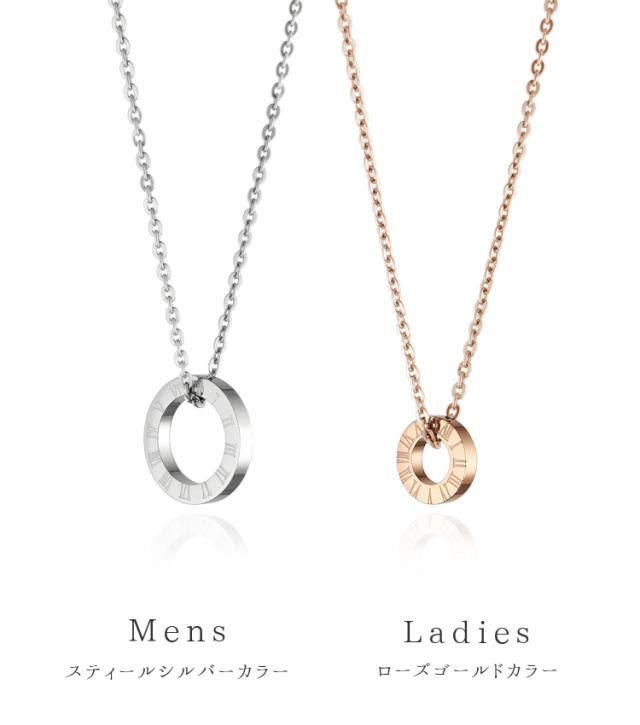 ペアネックレス 2本セット ステンレス 金属アレルギー 刻印無料 クリスマス プレゼント 贈り物 ギフト ローマ数字 合わせデザイン シンプル おしゃれ リング型 ペンダント サージカル 316L スティールシルバーカラー ローズピンクゴールドカラー(lstn019pair)