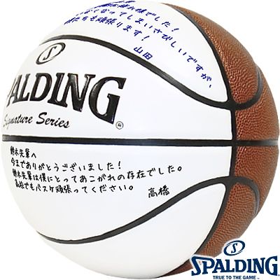 ![]() 卒業記念におすすめ メッセージを書き込めるサインボール 旅立ちへのエールや応援、バスケ部の思い出に。 お世話になった先生や先輩に、このボールを贈り感謝の気持ちを伝えましょう。 ![]() ![]() シグネチャーボール 表は、通常の合成皮革で出来たバスケットボール。 裏はエナメル素材、手書きなどで文を書き込むことができます。 ![]() 寄せ書き・手書きメッセージ例 赤司先輩へ 今までありがとうございました。 赤司さんは僕にとって憧れの存在でした。 高校でもバスケ頑張ってください。 高橋 黒子先輩へ バスケ3年間お疲れさまでした。大活躍でしたね。 黒子さんがいなくなってしまうと寂しいですが、僕たちも明るく頑張ります。 山田 一般男性・大学男子・高校男子・中学校男子用