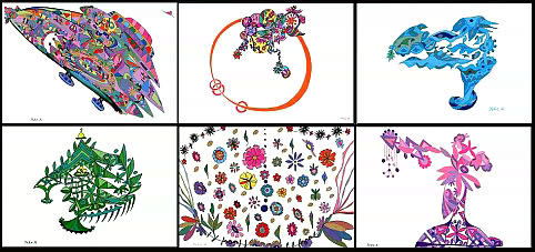 | ●内容 :「心が遊ぶ絵」は、落書き帳から飛び出した絵ともいえます。 5年程前、父親(現在95歳)の介護のため仕事を辞めた作者は、外出もままならない状態の中、ひょんなことから絵を描きはじめました。最初は色鉛筆、クレヨンから始まり、その内図面用の大きな用紙に、絵の具で花火のような美しい絵や、富士山を描いたり、と内容も変化し、いつのまにか現在の作風になりました。 側で絵を描いていると、父親が安心することから、ますます『らくがき』に励み続け、心が遊ぶ絵は現在、数にして500枚以上にもなります。 画用紙にペンを当てると自然に手が動き、カラフルな色合いで描かれる不思議な絵。この絵を見た人達からは、「元気になる。癒される。楽しくなる。ほっとする」 「逆さにしたり、横にしたり、見る角度を変えても面白い」「よくこんなに面白い絵が描けるね」「この絵にどんな意味があるのかしら、何を表現しているのか想像するだけでも楽しい」etc。本当にたくさんの反応があり、作者本人も癒され、介護を続ける上でのストレス解消にもなっています。この「心が遊ぶ絵」を御覧になって、皆様はどのような感想、印象をお持ちになるのでしょうか。 |