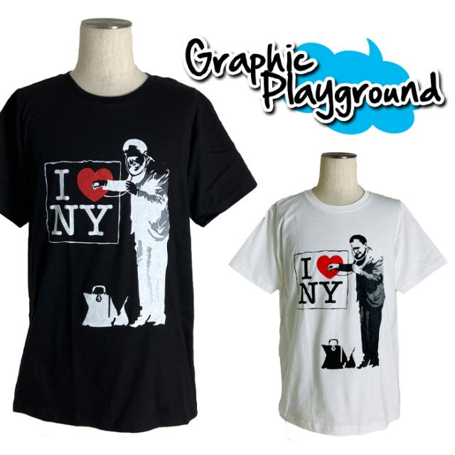 [メール便送料無料]パロディーTシャツ メンズ レディース おもしろ Tシャツ Banksy バンクシー I Love New York グラフィックTシャツ ポップTシャツ パロディ 大きいサイズ S-XLサイズ 黒 白 ネタTシャツ 半袖 トップス ギフト 映画 洋画