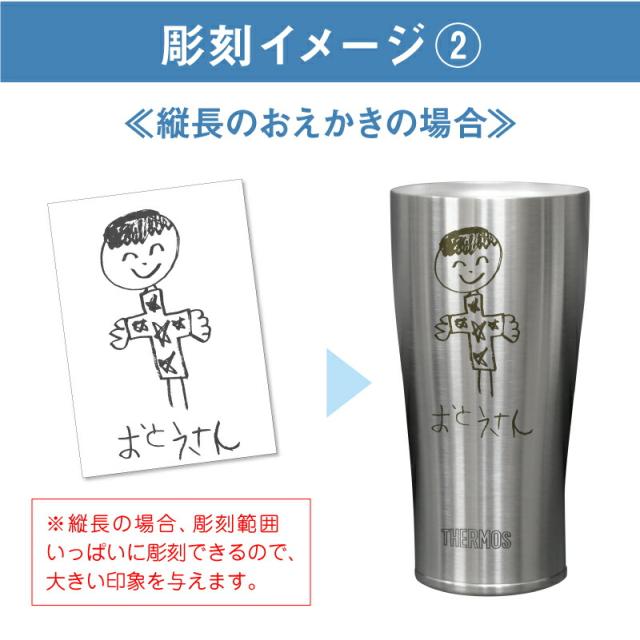 お子様が描いた似顔絵やお絵かきをサーモスタンブラーに彫刻!