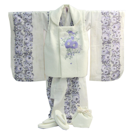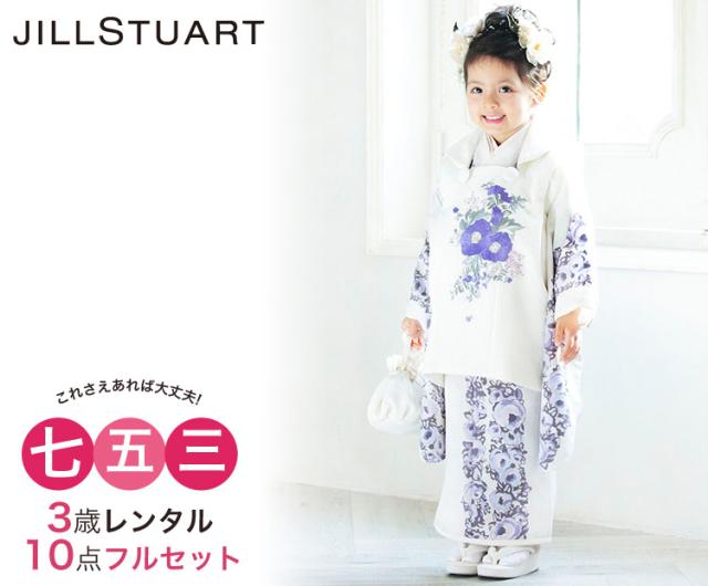 七五三 3歳 着物 レンタル 女の子 被布着物10点セット「オフホワイト地に紫の花/被布:白」JILLSTUART 被布セット モダン レトロ