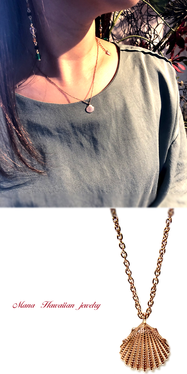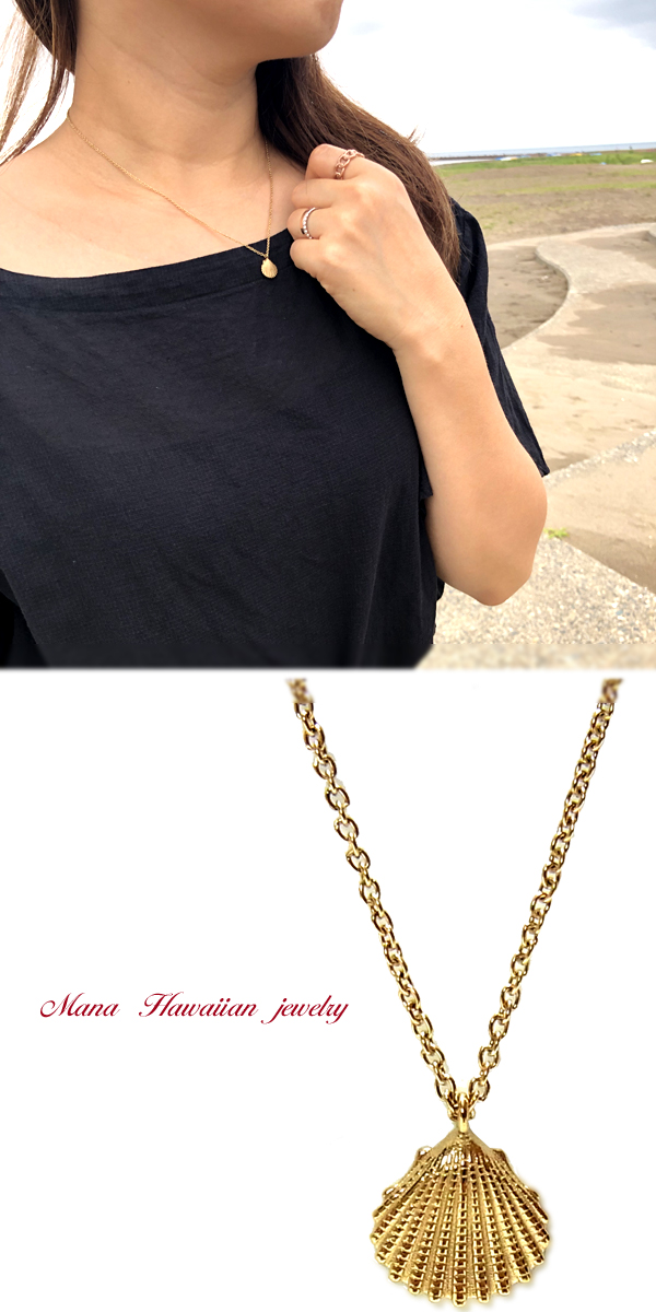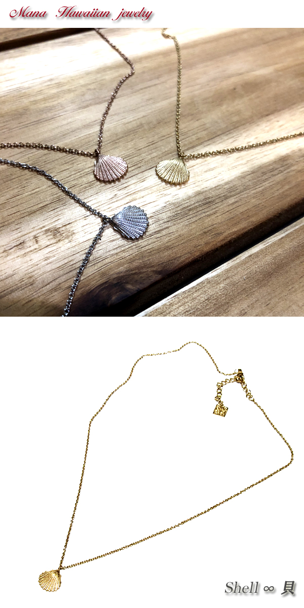 ハワイアンジュエリー ネックレス シェル 貝 レディース K14イエローゴールドコーティング スチールシルバー ピンクゴールド サージカルステンレス インスタ ラッピング対応 アレルギー対応