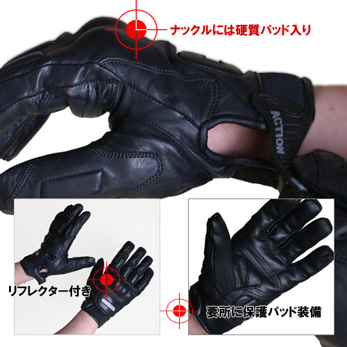 バイク用のUGM-27はウレタンフォーム衝撃吸収材料を多用しナックルの部分にはプラスチック材を使用することで転倒時からの衝撃を緩衝したりグリップ性を