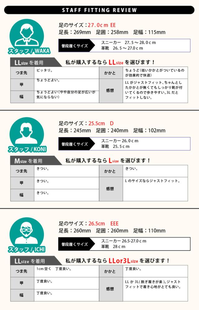 サイズ:M(〜25.0)、L(〜26.0)、LL(〜27.0)、3L(〜28.0)
