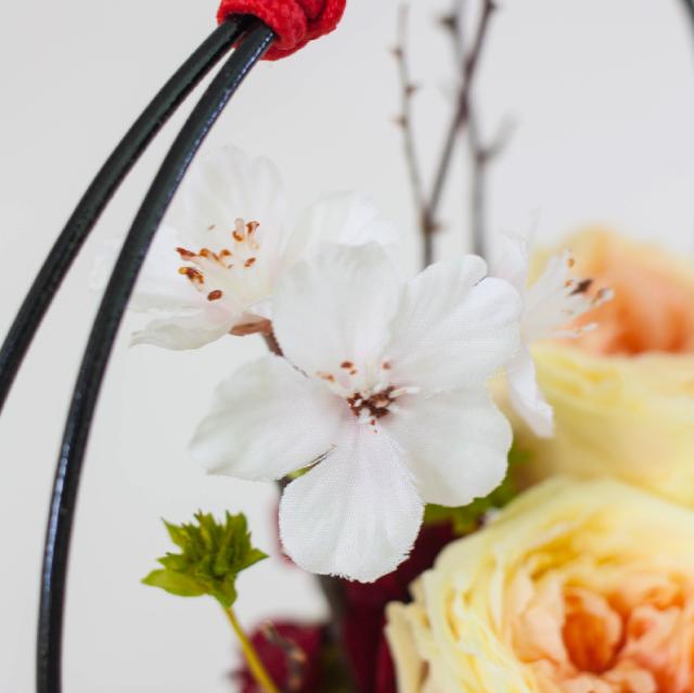 和花の桜と洋花のローズが織りなす和洋の美しい調和が魅力です。