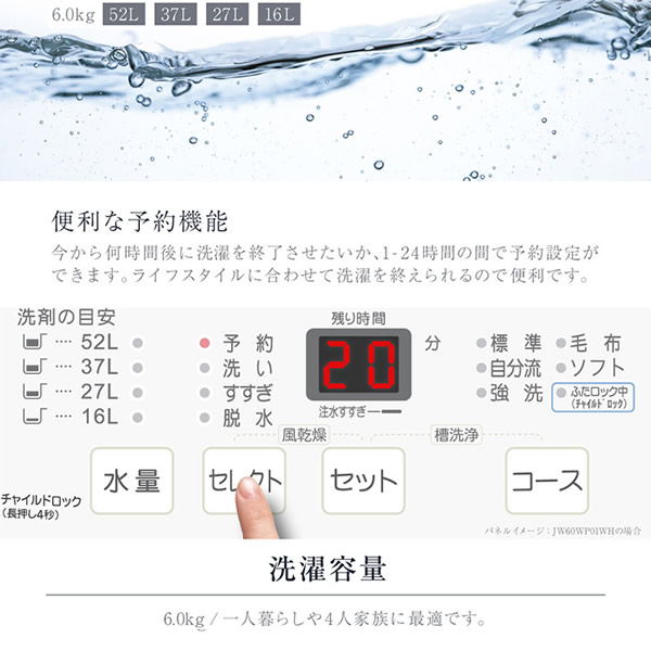 | 容量(洗濯/脱水) | 6.0kg |