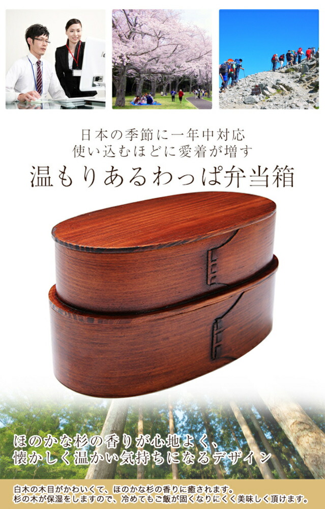 お弁当箱 曲げわっぱ 小判二段入子 弁当箱 漆塗り 1030ml 2段 お箸セット付き 曲げわっぱ弁当箱 お弁当箱 まげわっぱ 和風 男子 大容量 女子 大人 子供 女の子 男の子 スリム おしゃれ 運動会 遠足 麺 丼 木製 送料無料
