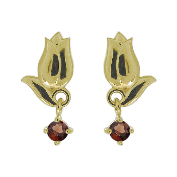 1月誕生石ガーネットを使用した18金製の、チューリップ(フラワー)モチーフスタッドピアスです。