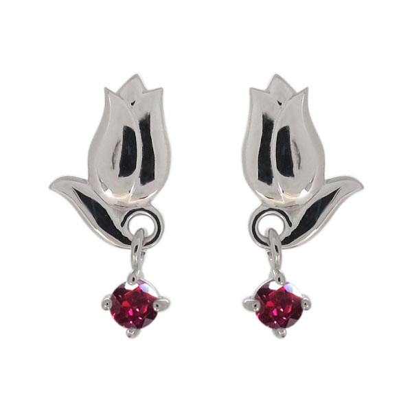 ピアス チューリップ 花 揺れる プラチナ レディース 7月誕生石 ルビー
