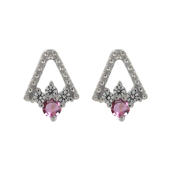 ピンクトルマリン ピアス プラチナ レディース ミル打ちデザイン スタッドピアス