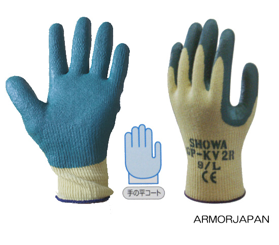 ケブラーを採用し、手のひらにニトリルゴムをコーティングした耐切創性背抜き手袋。
