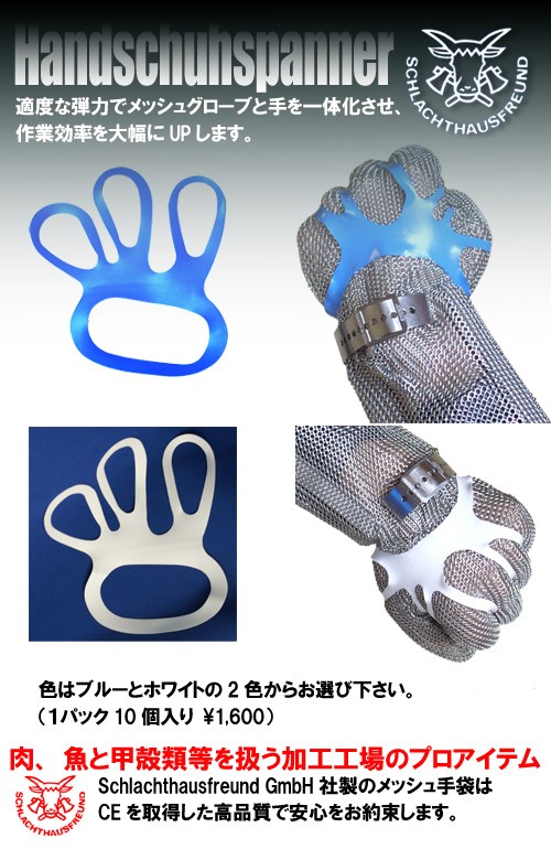 タイトナーは金属グローブを適度に締め付けグローブと手を一体化し作業効率を大幅にアップします。金属手袋の必需品です。
