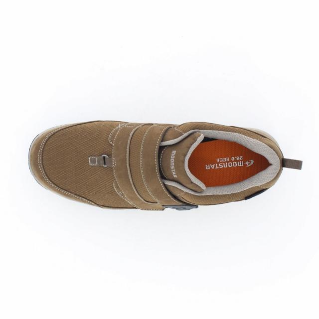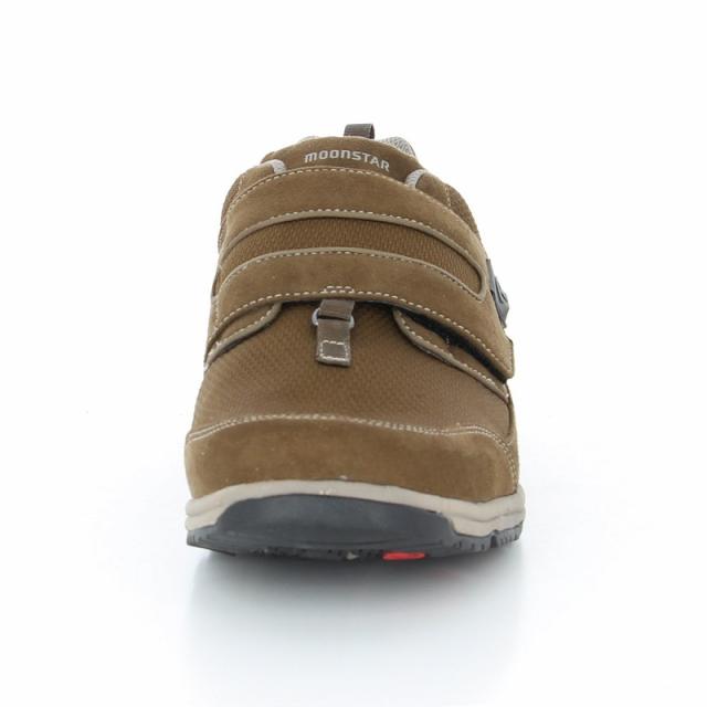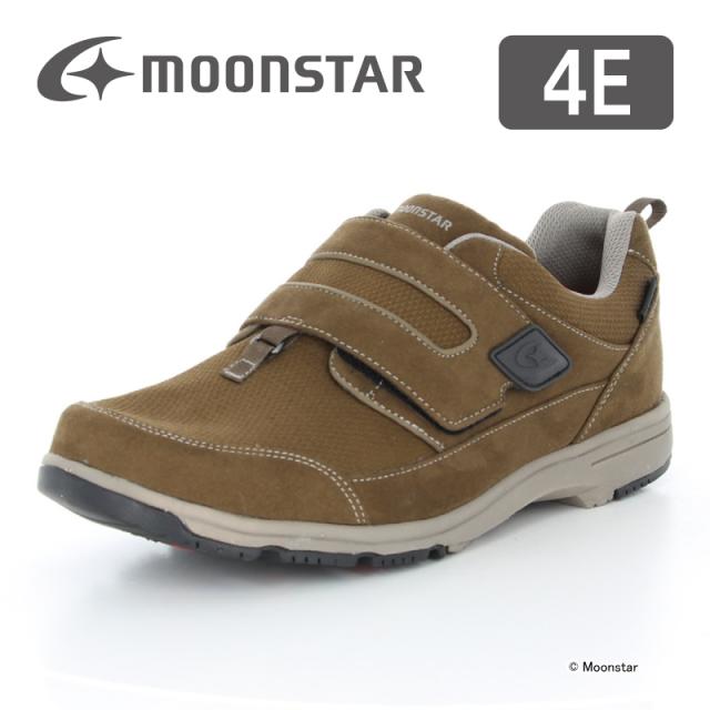 ムーンスターのメンズ防水防滑ウォーキングです。アウトソールにはムーンスター独自開発の防滑ラバー「EVACS(R)-N」を使用しています。軽くて屈曲性が良く、快適な履き心地です。【ワイド設計】足幅の広い方に対応した商品です。【ふわピタ中敷】低反発ウレタンを使用した中敷で、足に柔らかくフィットします。【Ag+抗菌防臭】銀イオンの抗菌作用でにおいのもととなる菌の増殖を抑制し、防臭効果を発揮します。天然由来成分で安全です。【サラリーナ】汗や水分を素早く吸収・拡散し、靴内をサラサラな状態に保つメッシュを使用しています。【防水設計】地面から4cm、4時間の浸漬状態での防水機能です。【セーフティブライト】光を反射する素材を装備し、優れた反射効果で夜間の歩行での安全性を高めます。【EVACS(R)-N】一般的なソールに比べて濡れた路面、乾いた路面での防滑性の差が少ないソールです。【出るベロ】バンドを引っ張るだけでベロも前に開き、足を入れやすい設計です。【軽量設計】軽くなるような工夫を施した設計です。(ウィズ)4E (素材:アッパー) 合繊 (底材) EVA/ラバー (原産地) CHINA (重量)片足約270g/26.0cm時 (ヒール高)約4.0cm/26.0cm時
