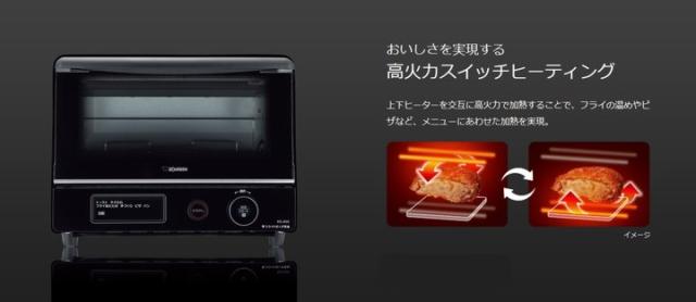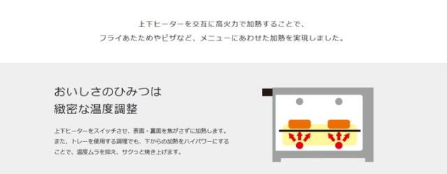 上下ヒーターを交互に高火力で加熱することで、フライの温めやピザなど、メニューに合わせた加熱を実現。
