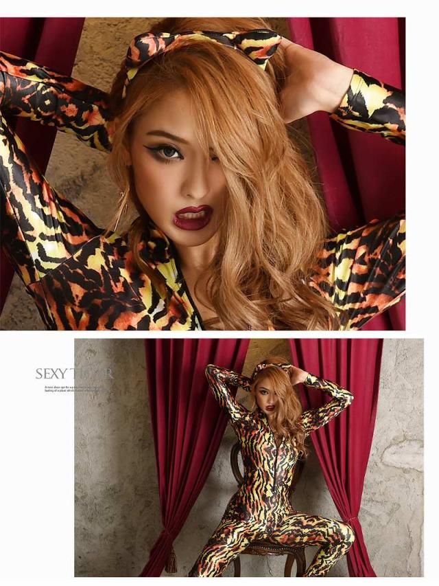 コスプレ 衣装 コスチューム コンパニオン 衣装 パーティー 仮装 Ryuyu ヒョウ 女豹 長袖 ボディスーツ