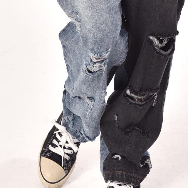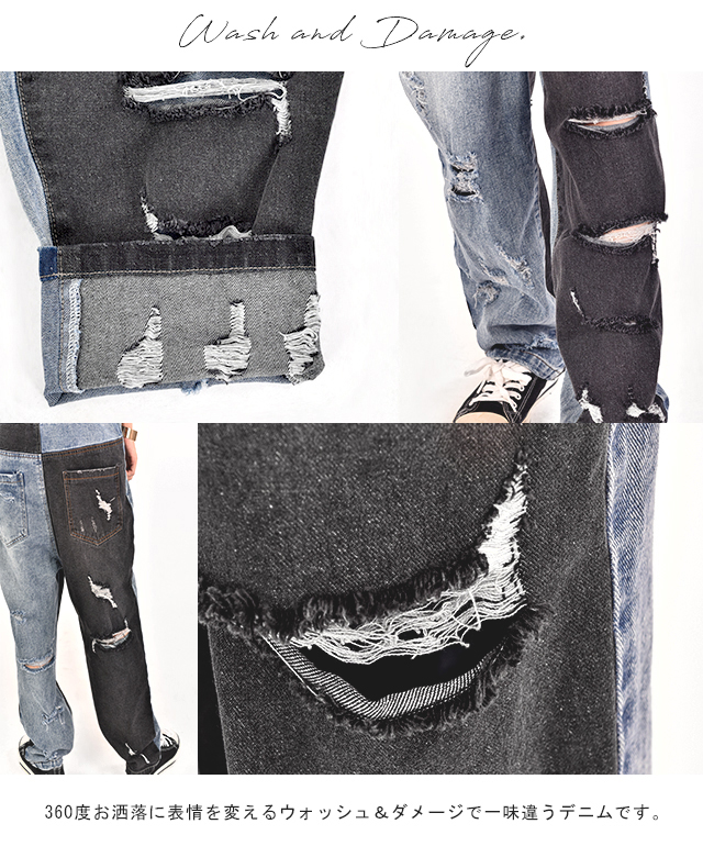 ダメージ加工と切り替えで、個性的なデザインです。