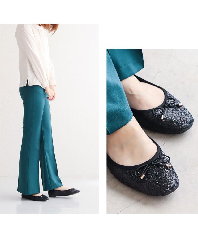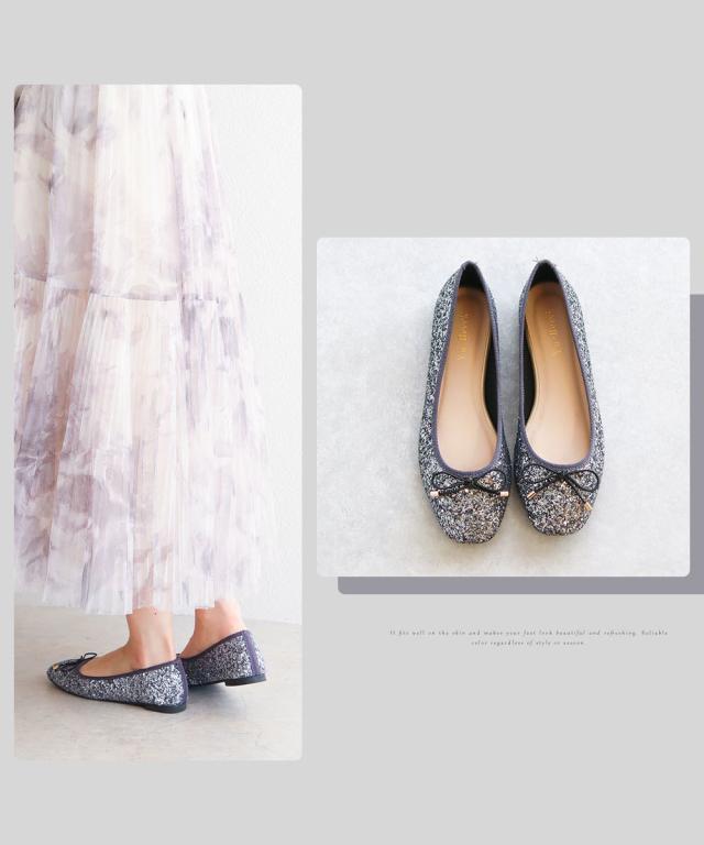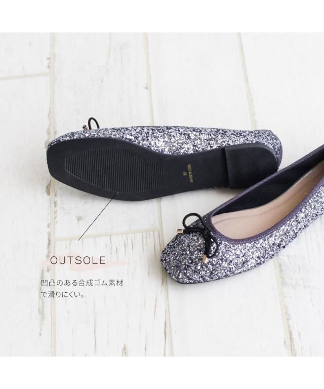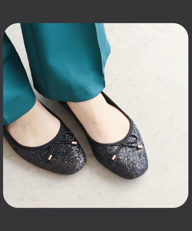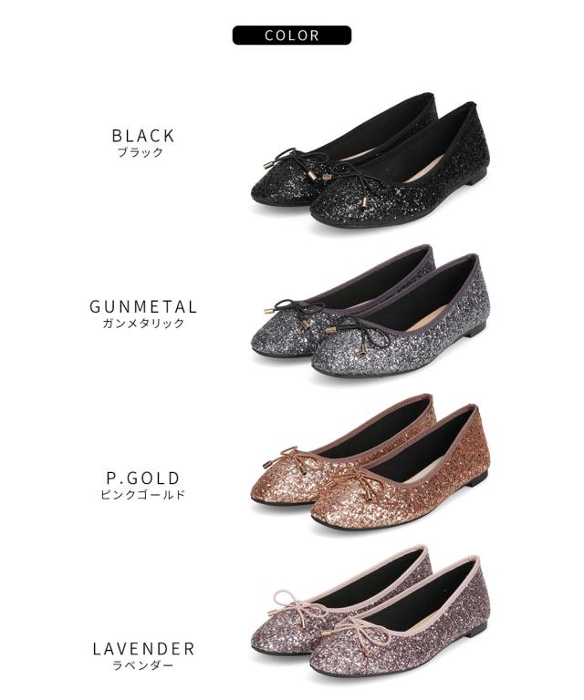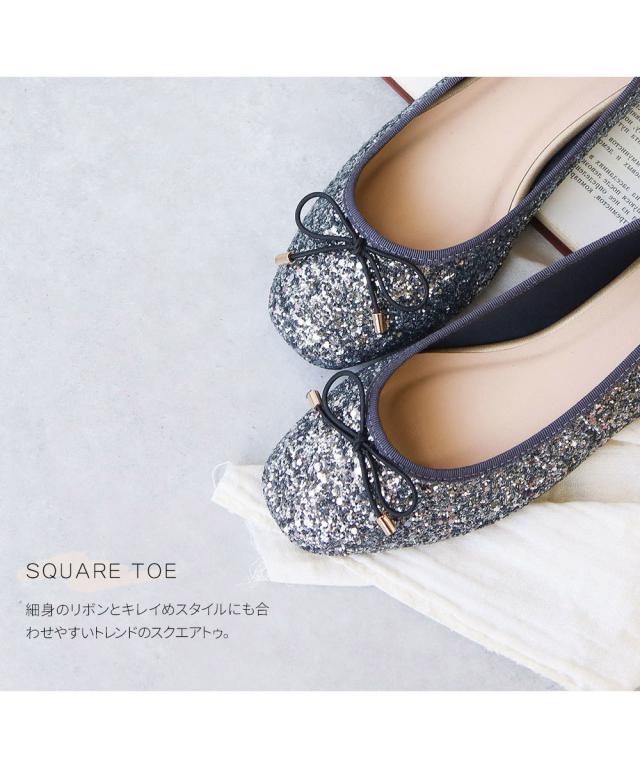 パンプス ローヒール キラキラ 痛くない 柔らかい スクエアトゥ フラット バレエシューズ レディース グリッター フラットシューズ リボン ぺたんこ パンプス 歩きやすい パーティー 黒 ゴールド ガンメタ 2277