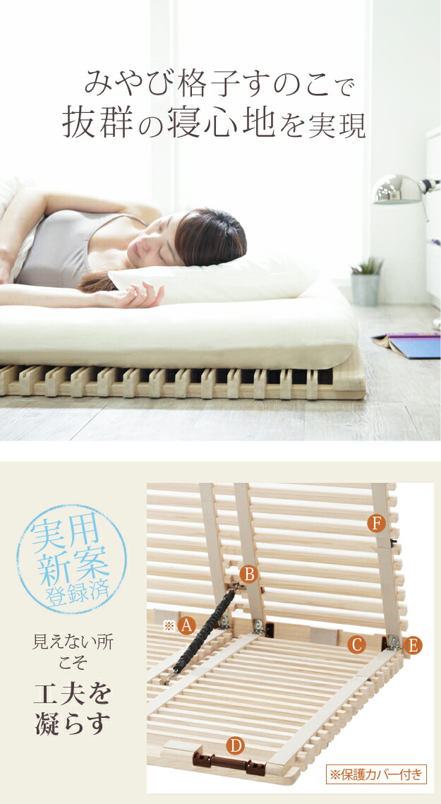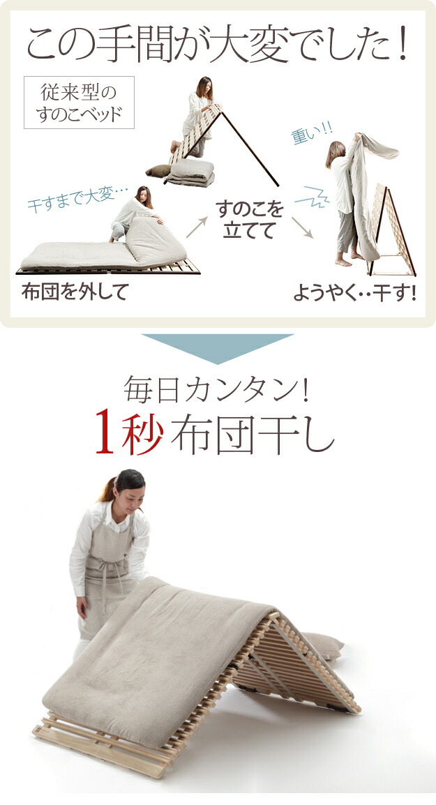 【2018年グッドデザイン賞受賞】 すのこベッド 折りたたみ シングル 1秒で簡単布団干し アシスト機能付き みやび格子 エアライズ シングル 二つ折り 桐 天然木 布団干し 室内干し 沖縄 一部離島は別途送料見積もり