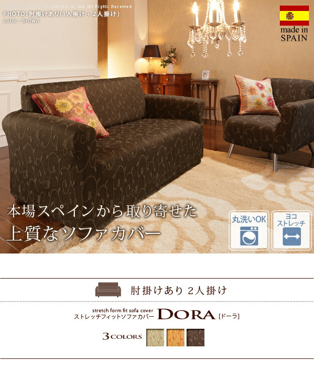 ソファーカバー ストレッチ 肘付き『スペイン製 ストレッチ フィット ソファカバー ドーラ アーム付き2人掛け用』ストレッチ フィットカバー 沖縄 一部離島は別途送料見積もり 61000207