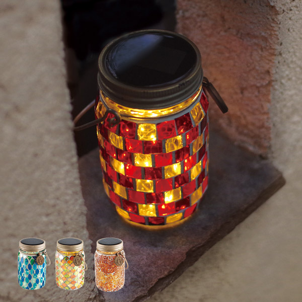 ガーデンライト ソーラーライト エトワル モザイクガラス ( 屋外照明 玄関照明 玄関ライト 外灯 レトロ 店舗 アンティーク照明 非常灯 ソーラー 玄関 照明 ガーデン 庭 屋外 ソーラージャー ボトルジャー LEDランタン LED 自動点灯 )
