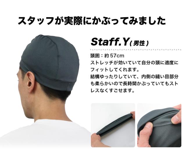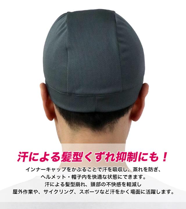 インナーキャップをかぶることで汗を吸収し、蒸れを防ぎ、ヘルメット・帽子内を快適な状態にできます。