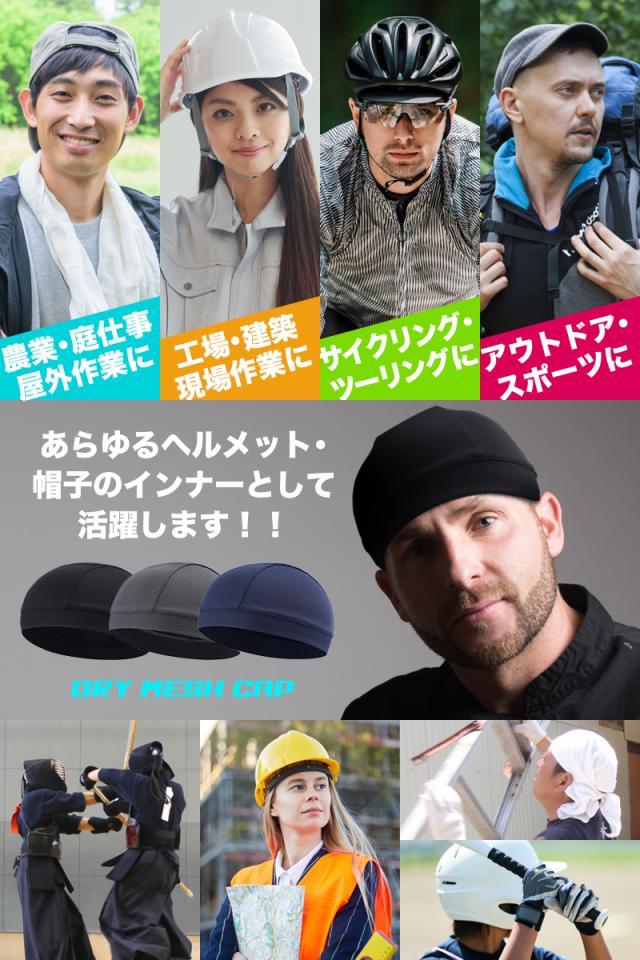 汗による髪型崩れ、頭部の不快感を軽減し屋外作業や、サイクリング、スポーツ、アウトドア、工事、建設現場作業など汗をかく場面に活躍します。