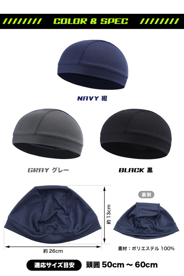 | 商品詳細 | ・カラー/紺・グレー・黒 ・素材/ポリエステル100% ・サイズ/フリーサイズ ・適応サイズ目安/頭囲50〜60 ・枚数/1枚 〇吸汗・速乾性 〇伸縮性抜群!! 〇優れた通気性 |