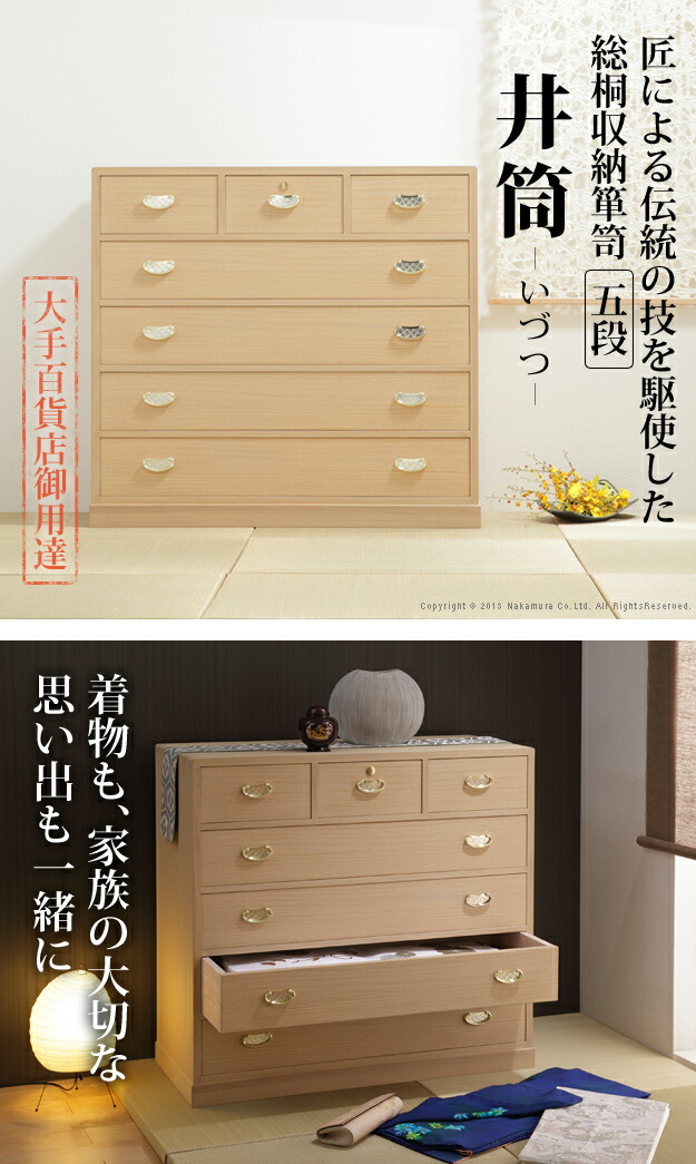 桐たんす 着物 収納 国産 総桐収納箪笥 5段 井筒 いづつ 桐箪笥 桐タンス 衣装タンス 衣装箱 桐衣裳ケース たんす チェスト 桐 桐天然木 たとう紙 保管 引出し 和箪笥 和たんす 和タンス 整理タンス 日本製