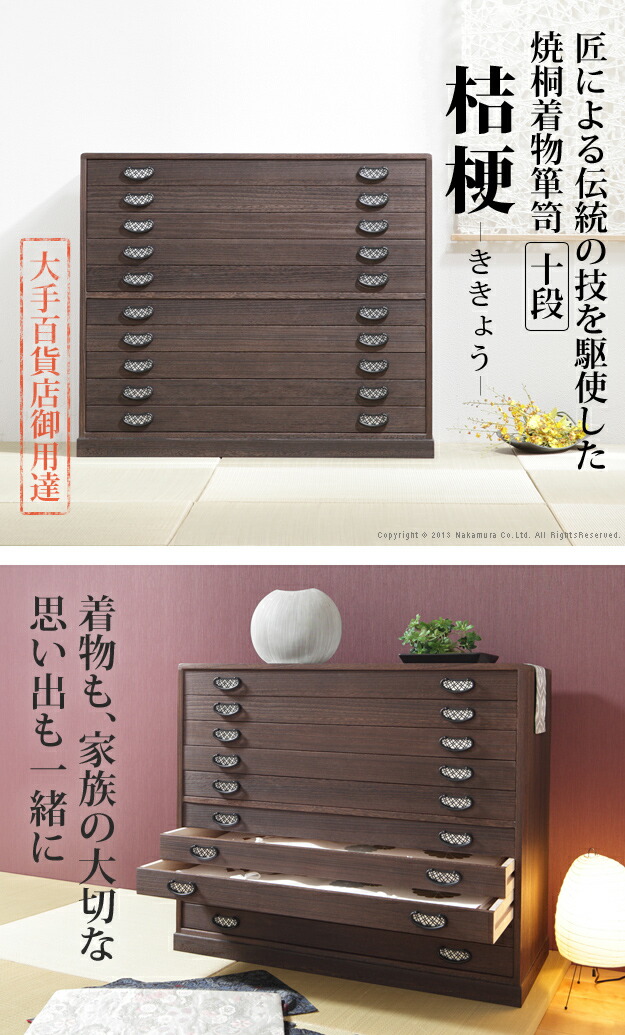 桐たんす 着物 収納 国産 焼桐着物箪笥 10段 桔梗 ききょう 桐箪笥 桐タンス 衣装タンス 衣装箱 桐衣裳ケース たんす チェスト 桐 桐天然木 たとう紙 保管 引出し 和箪笥 和たんす 和タンス 整理タンス 日本製