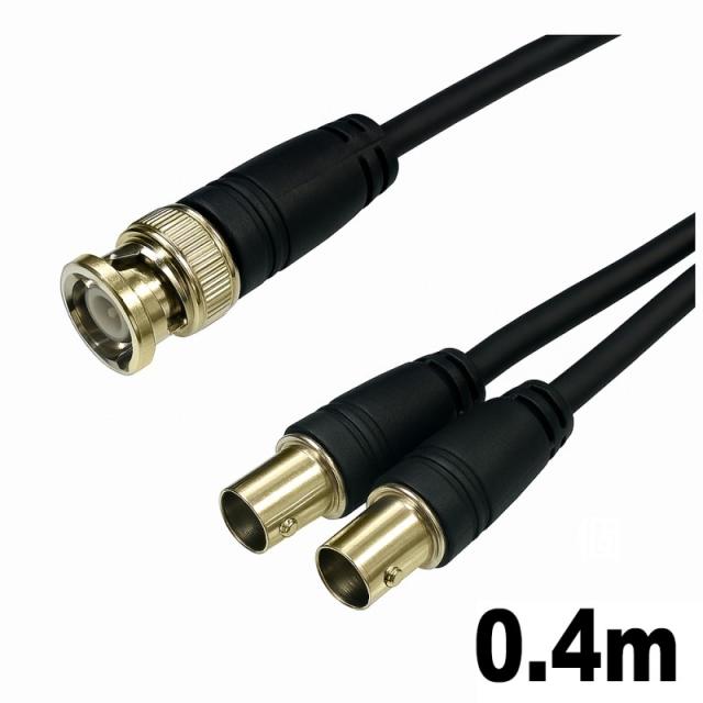 2分配 BNCケーブル 0.4m 同軸ケーブル 2分配 オス メス×2 業務用 防犯カメラ対応 高画質 高性能 コネクトケーブル 3Aカンパニー AVC-SPBNR04 メール便送料無料