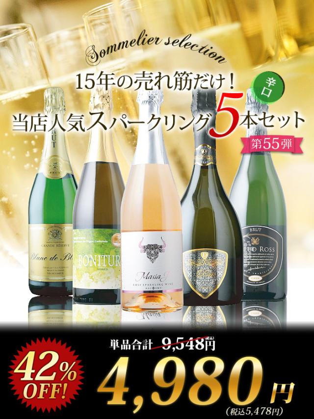 ワインセット 当店人気スパークリングワイン5本セット(スパークリングワイン4・ロゼスパークリング1) 第55弾