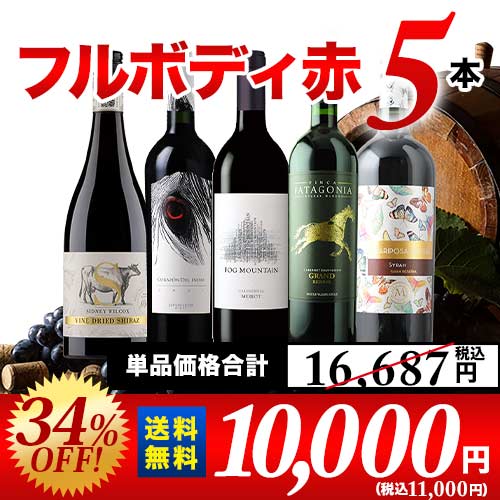 ワインセット 赤ワイン 送料無料 カリフォルニア入り!ワンランク上のフルボディ赤ワイン5本セット 第59弾【お試し ワインセット ソムリエ 飲み比べ 】