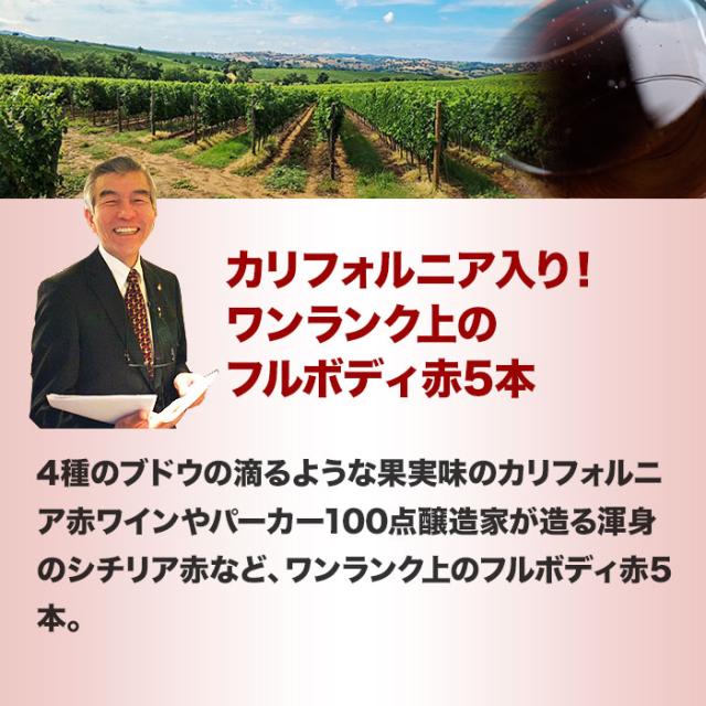 ワインセット 赤ワイン 送料無料 カリフォルニア入り!ワンランク上のフルボディ赤ワイン5本セット 第56弾【お試し ワインセット ソムリエ 飲み比べ 】