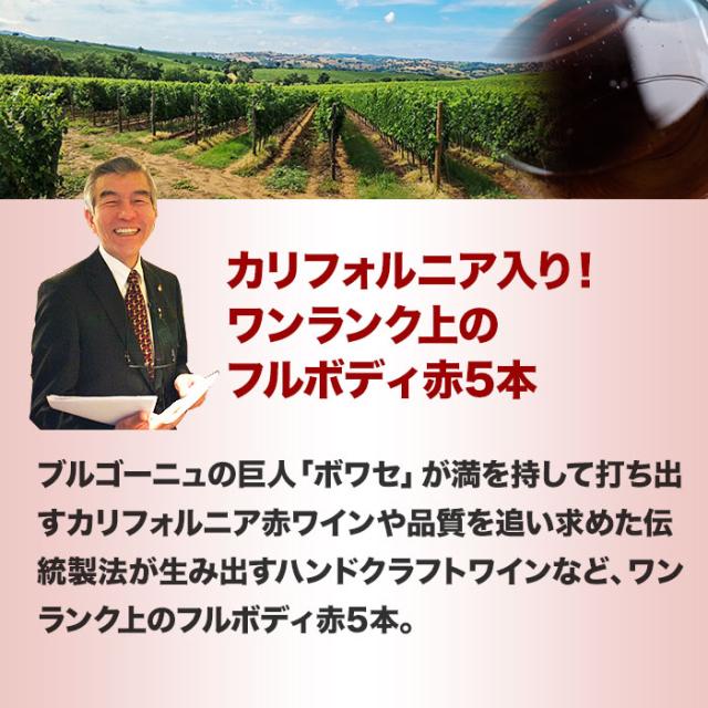 ワインセット 赤ワイン 送料無料 カリフォルニア入り!ワンランク上のフルボディ赤ワイン5本セット 第58弾【お試し ワインセット ソムリエ 飲み比べ 】