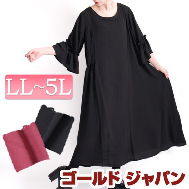 春新作 大きいサイズ フリルスリーブロングワンピース ワンピース ワンピ ミモレワンピース ミモレ ギャザー 5分袖 フリルスリーブ キャンディースリーブ 秋 春 LL LLサイズ 2L 3L 4L 5L 13号 15号 17号