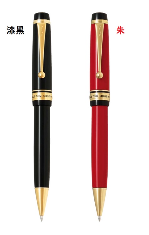 最高級・漆(うるし)塗りボールペン。軸色は漆黒と朱色の2色です。