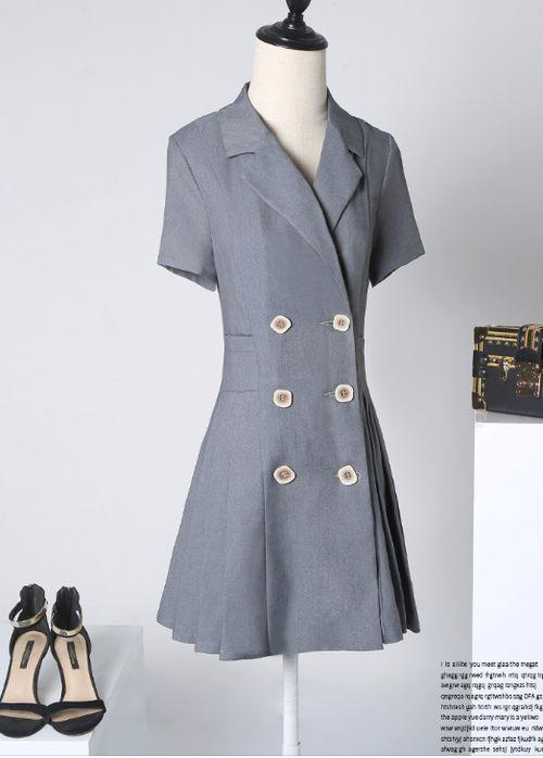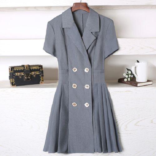 パーティードレス 結婚式 二次会 ワンピース 大きいサイズ スーツスカート ワンピース 襟 Vネック 半袖 無地 シンプル ミニ丈 レトロ シック プリーツ フロントボタン 可愛い レディース 大きいサイズ 上20 式30 かわ大 カジュドレ
