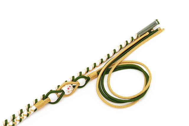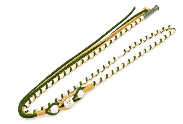 片方は細めの組み紐が四本に別れ、変わり結びが楽しめます。