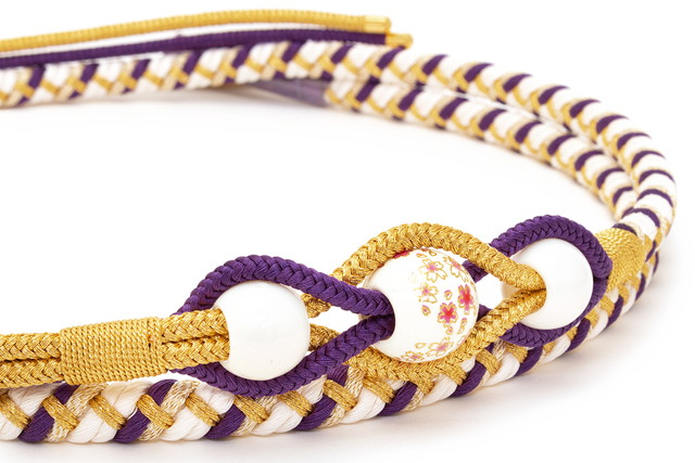 帯締め 振袖 成人式 振袖用 帯締め成人式 紫 パープル 白 トンボ玉 フェイクパール 手ぐみひも 正絹 蜻蛉玉 和装小物 日本製 送料無料