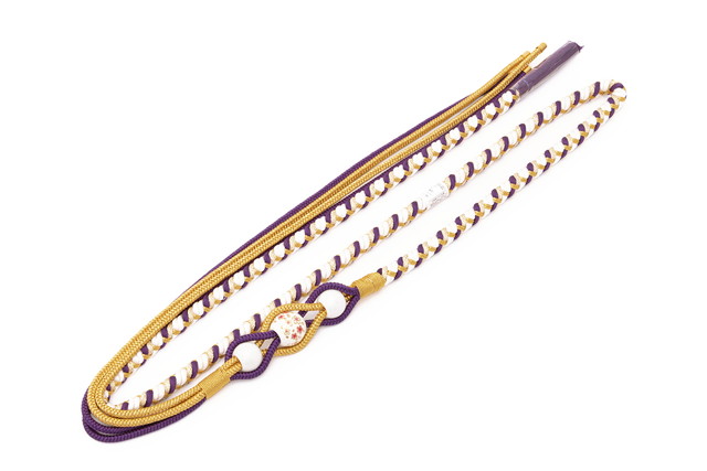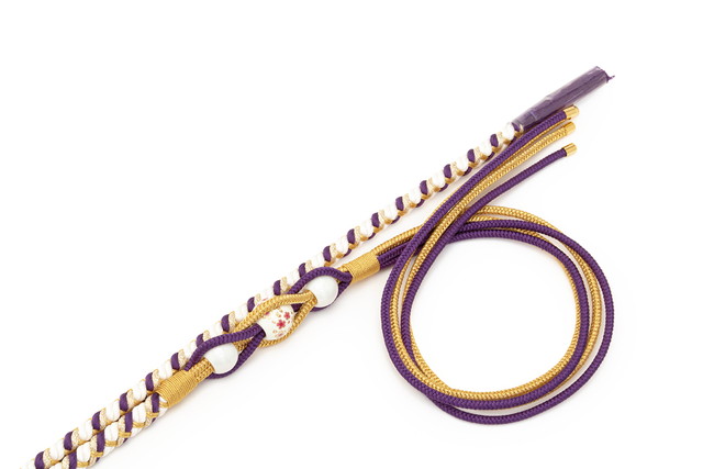 片方は細めの組み紐が四本に別れ、変わり結びが楽しめます。