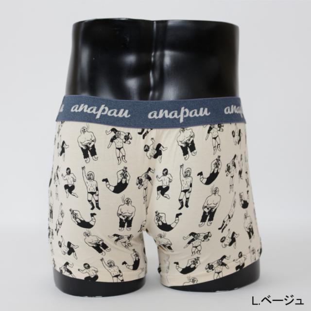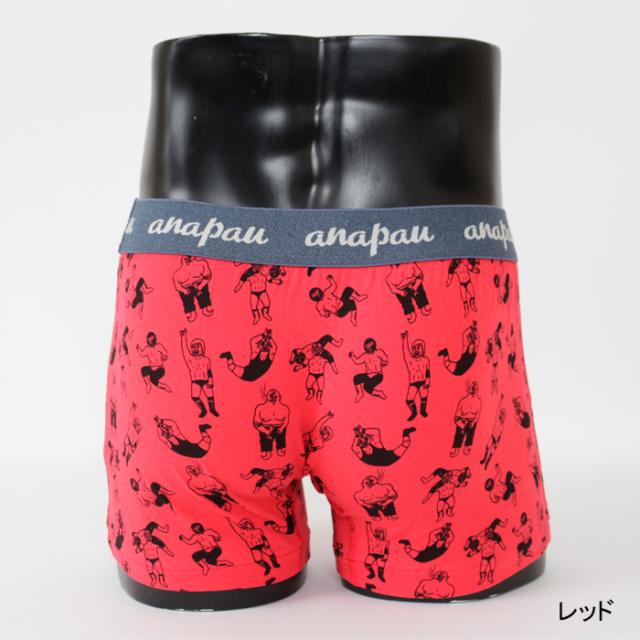 anapau(アナパウ)レスラー ボクサーパンツ ライトベージュ レッド グレー 下着 メンズ ギフト プレゼント バレンタイン 誕生日 かわいい おしゃれ ボクサー 日本製 MADE IN JAPAN