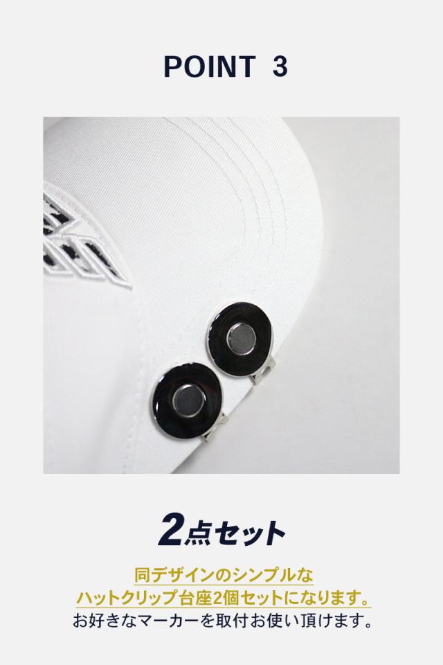 ボールマーカーが引き立つ、シンプルなデザインのハットクリップ 台座2個セットです。