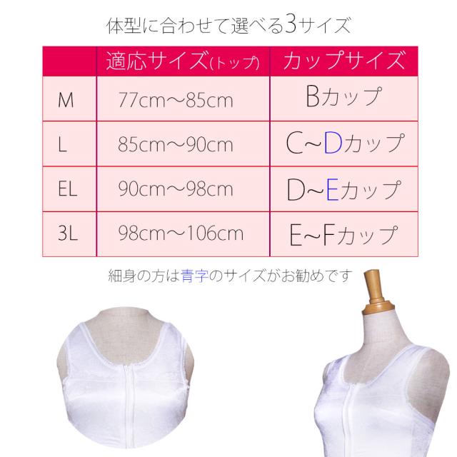 胸が大きな方にもお使い頂ける3Lサイズまでを御用意しました。