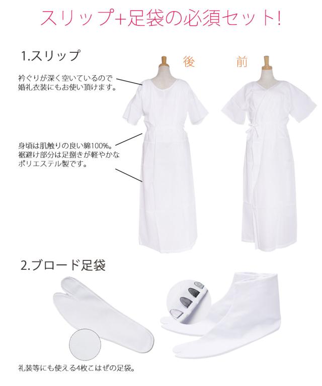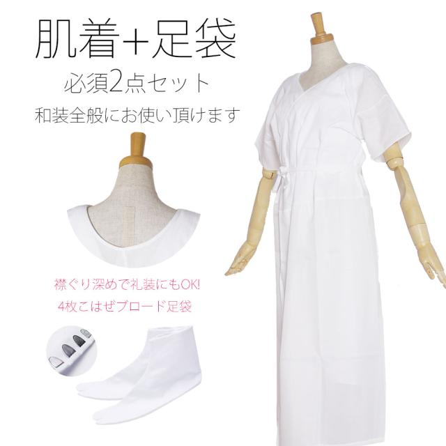 【ワンピース+足袋】和装肌着 2点セット 礼装用 婚礼用 襟ぐり広め 選べる M/L/LL 3サイズ 和装下着 メール便可